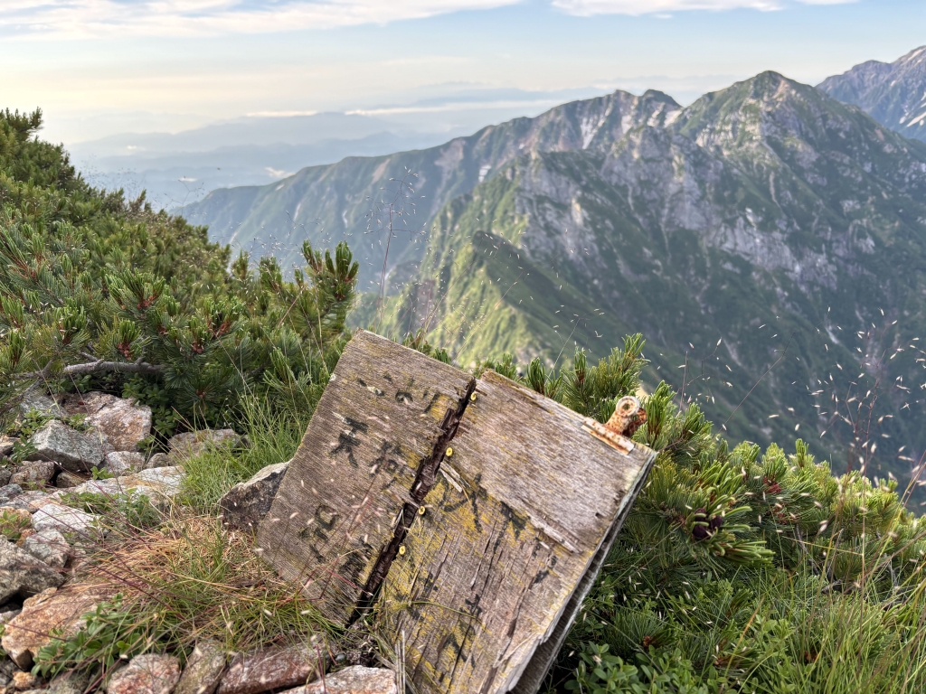 白馬槍ヶ岳山頂で雲もなくなり、雨が止みました