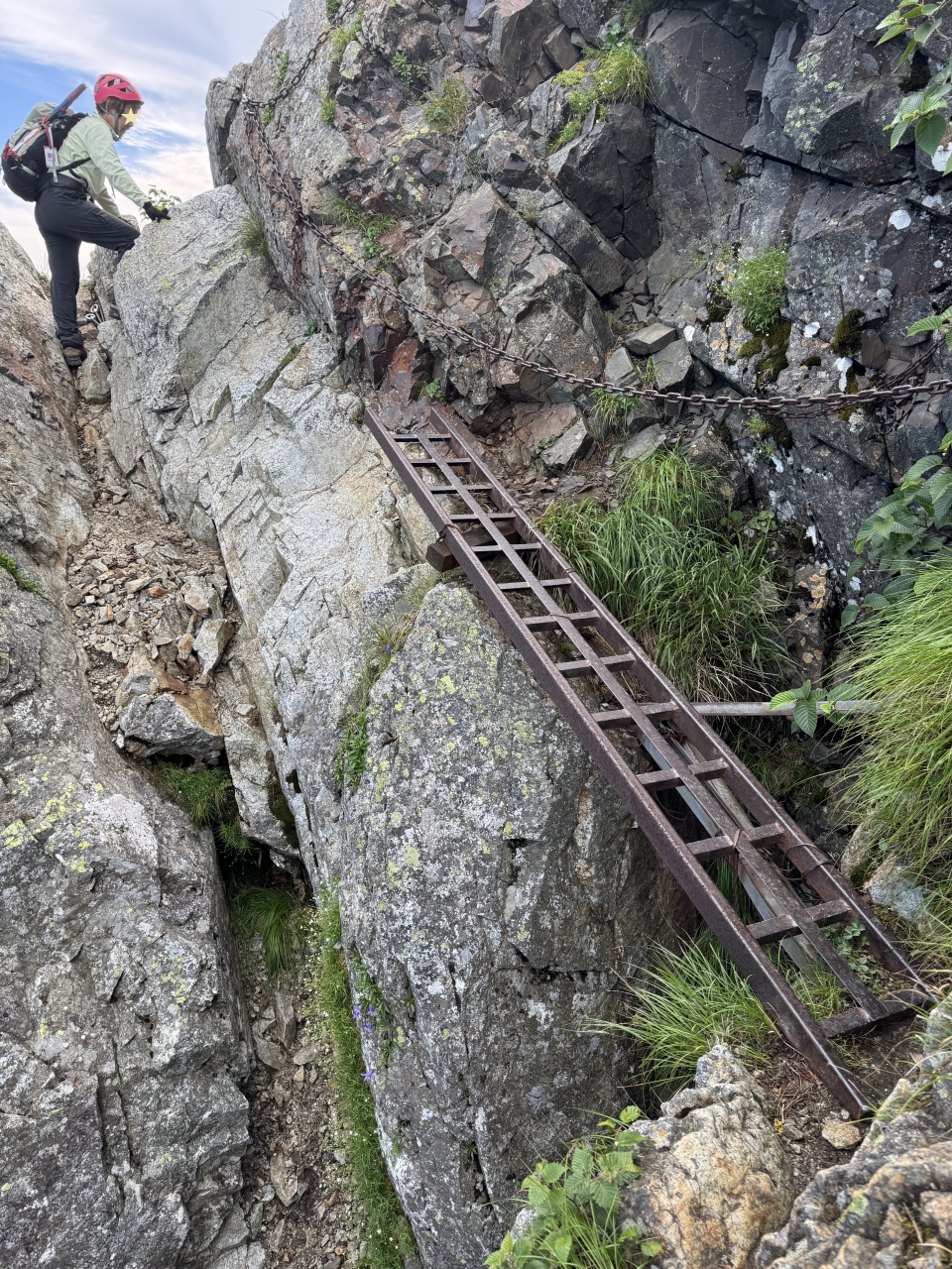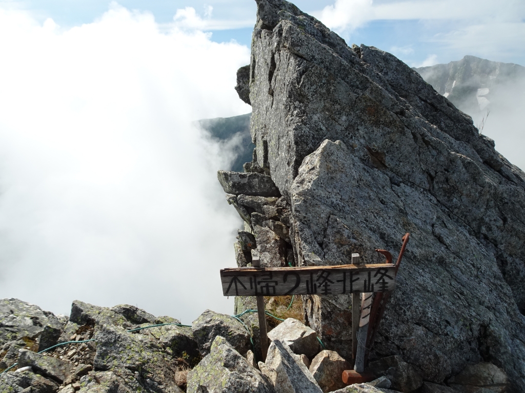 難関なのはⅠ峰からⅡ峰北峰間のルート。登山道は鎖場が連続し、空中はしごも一か所ある。Ⅱ峰北峰山頂手前の鎖場では大きな岩が浮石でずれ落ちそうな場所(※)もある。 ※下山中の八方池手前で出会った山岳警備の方に報告