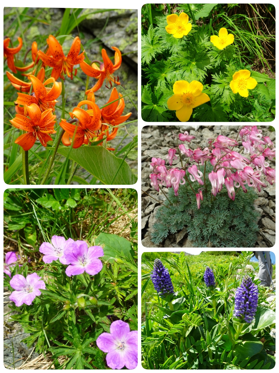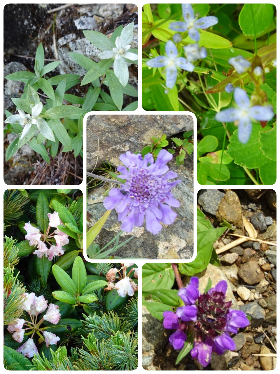 すんでのところで人的被害は無かったようだが、大変な光景を見てしまった。気を取り直して、いつもの杓子岳からの落石に注意しながら、アイゼンを外してからはお花も楽しみながら歩くこと、予定より30分ほど早く白馬岳頂上山荘に到着。