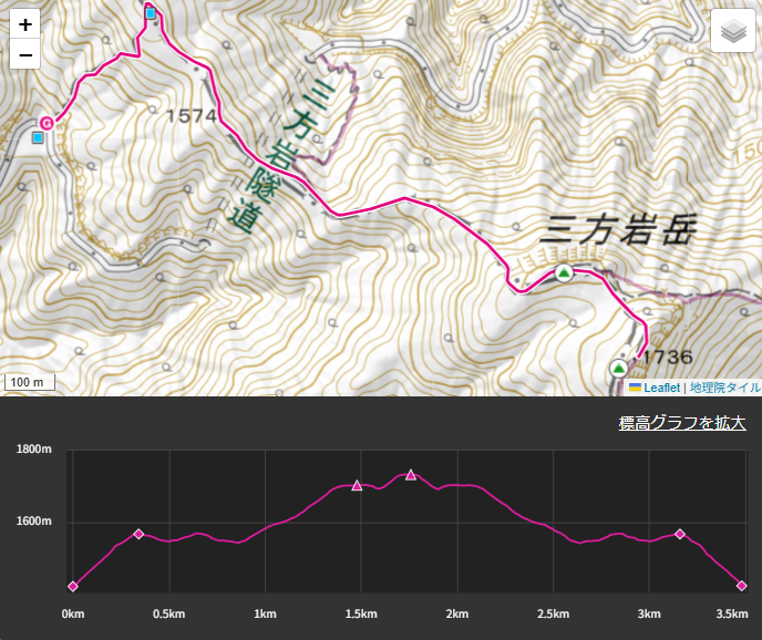 10:55ー三方岩岳11:05~11:17ー加賀岩展望台(昼食)12:17~