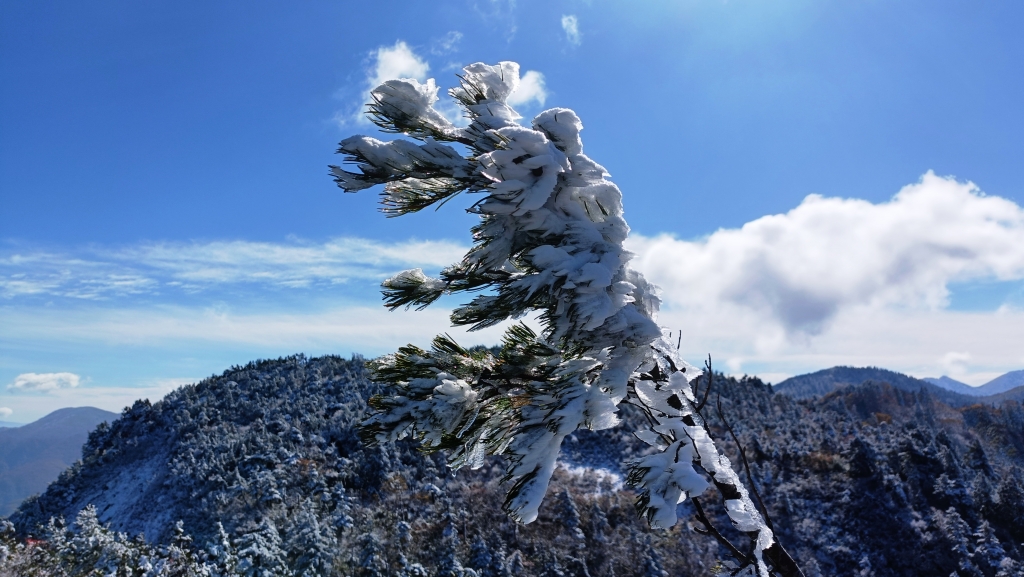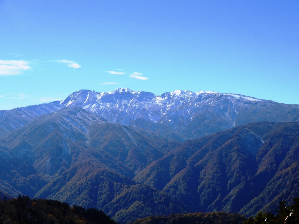 途中白山が姿を現すと「真っ白」、初冠雪の白山を見て感動!