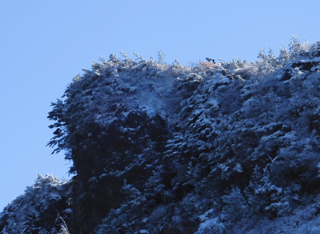 この道を登っていると「三方岩岳展望台」が見えます、この写真で見ると上の方に人の姿が見えます