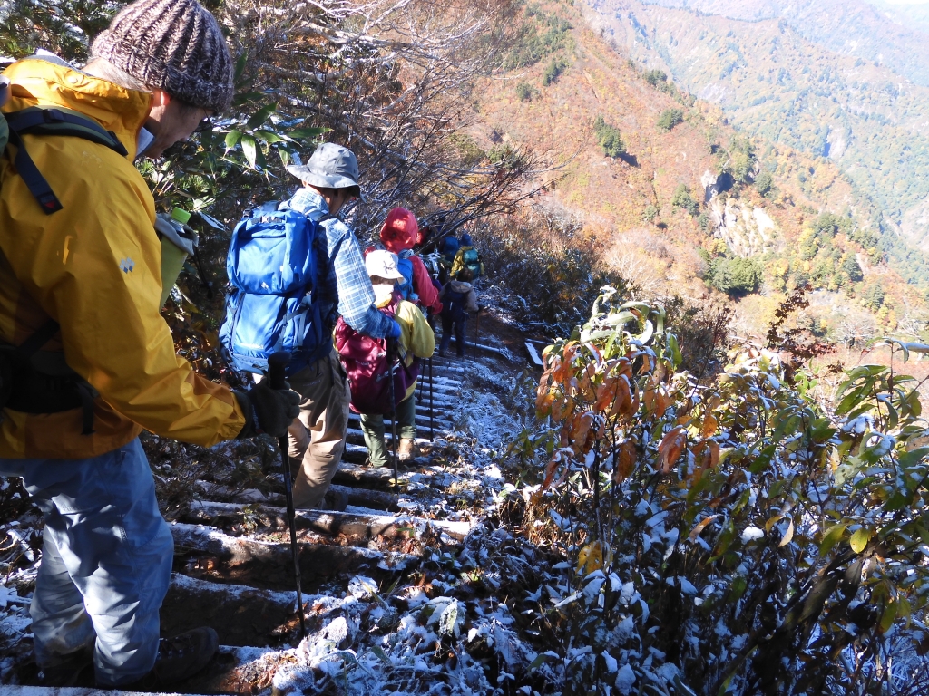 白山の「初冠雪」翌日、晴れの紅葉見物というラッキーな日に恵まれ楽しい例会でした