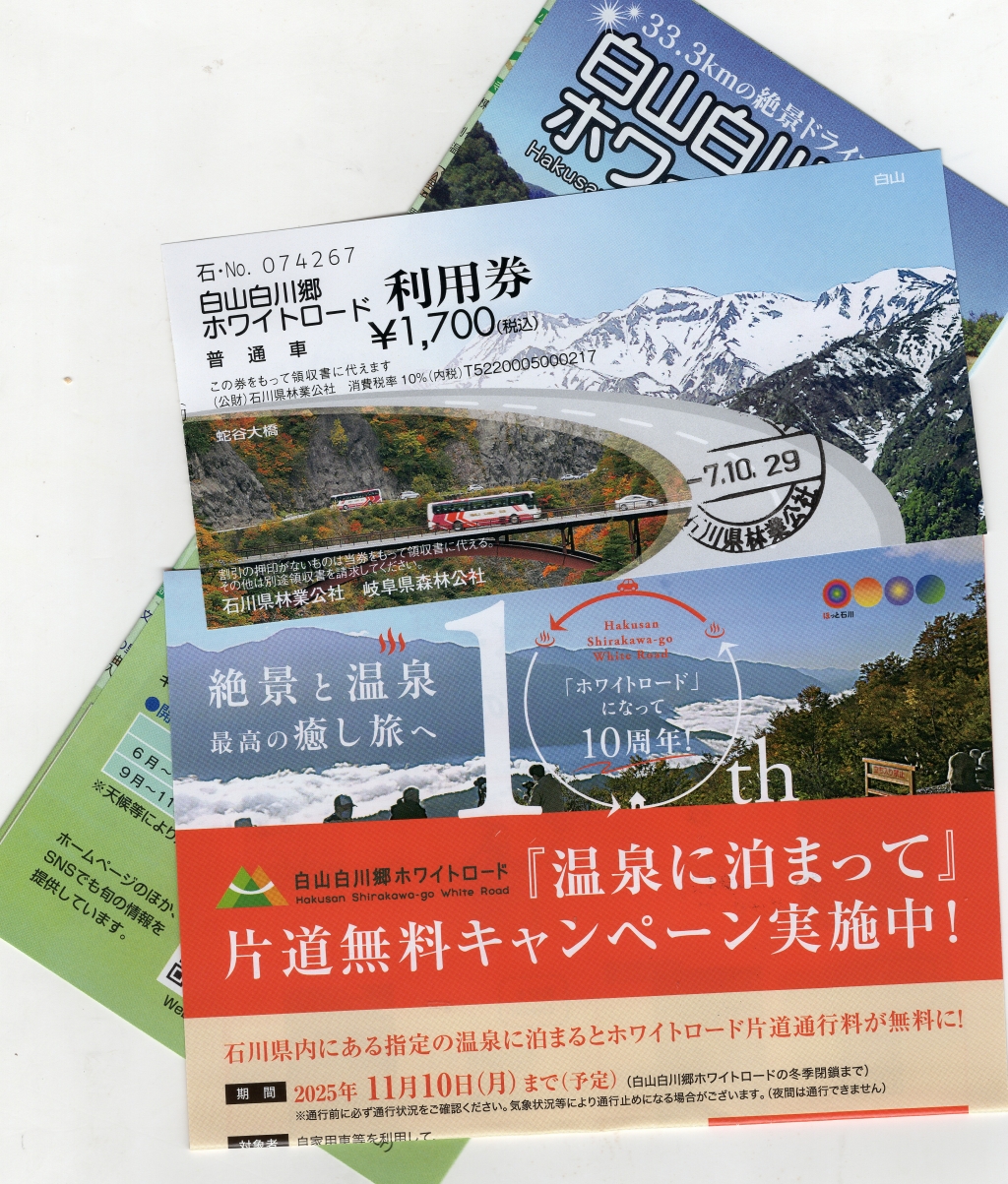 白山白川郷ホワイトロード 期間は11月10日までの予定となっているようです、ここにありますように料金がかかります