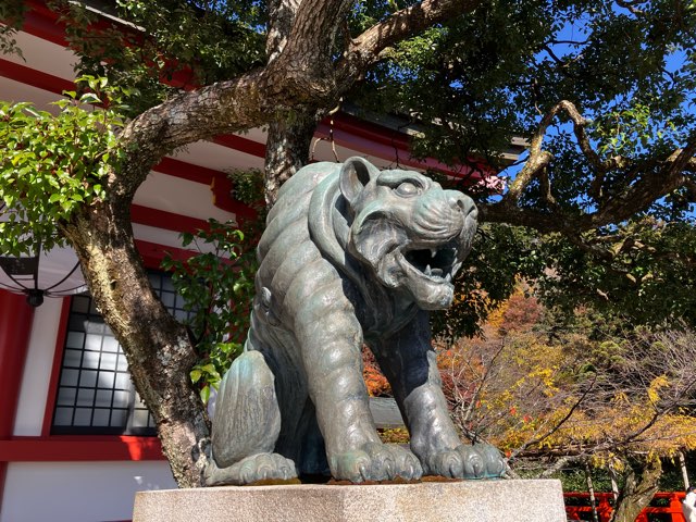 本殿脇には狛犬ならぬ狛虎が配置され珍しい。本尊である毘沙門天の遣い(神獣)が虎だかららしい。