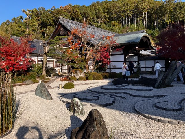 圓光寺に到着。予約してあるためスムーズに入場。徳川家康が国内教学の発展のために建立した禅の学校。龍と雲海をモチーフにした枯山水の庭園があった。どの方向から見るのが正解か。