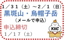 個人山行計画書提出・ 下山報告のアドレス kojin@khc-web.jp