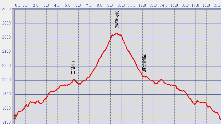 集合4:00-登山口6:22-寺地山9:19-避難小屋10:16-分岐12:01-北ノ俣岳12:14(昼食)12:55-避難小屋14:38-寺地山15:32-登山口18:15-解散21:00