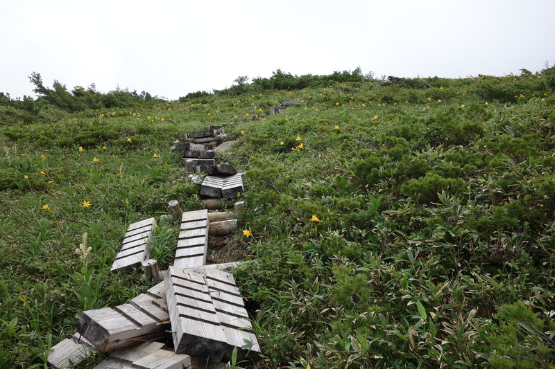 寺地山から北ノ俣岳までの木道はかなり壊れていました。