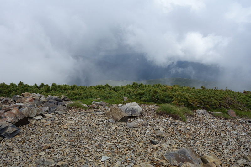 ほんの一瞬、薬師岳方面の雲が切れたのですが、カメラを向けたときにはすでに雲に覆われてしまいました