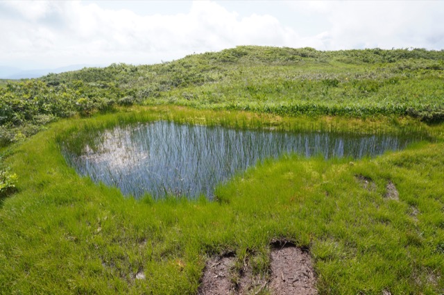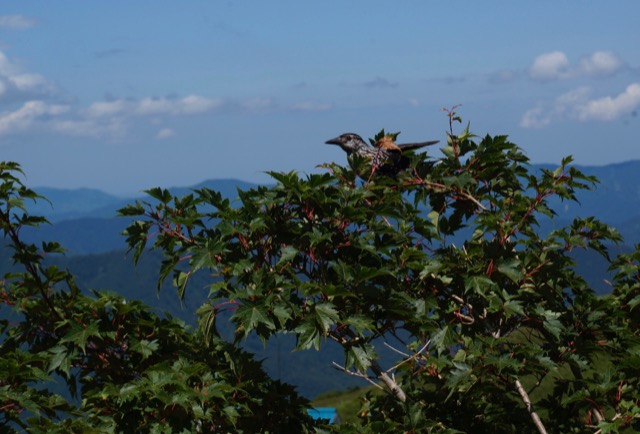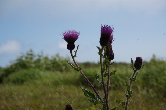 この日確認できた植物は、ワレモコウ、オニオオノアザミ、ヤマブキショウマ、ササユリ、サワラン、イワイチョウ、カラマツソウ、キンコウカ、クガイソウ、タマガワホトトギスなど、あとは、カオジロトンボという高原にしか生息しないトンボや、ホシガラスなどと出会うことができました。