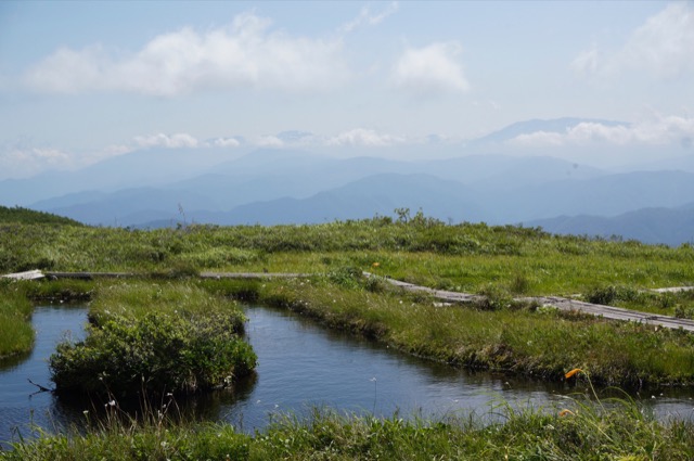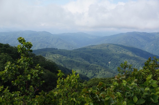 白木峰の予想気温は19度C〜20度Cと、非常に涼しい予想でしたが、実際に行ってみると予報通り涼しく、涼風が吹きわたり少し肌寒く感じるくらいで、汗をかいてもたちまち蒸発してしまうような天井の楽園という感じで、下界に降りてびっくり、この日の富山市の最高気温は37度Cを超えていて、まるでサウナ状態でした。