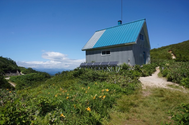 白木峰山荘は無人の山小屋ですが、太陽光発電によるバイオトイレは簡易水洗で、中央に囲炉裏があり、一部畳敷きで昼寝もできるなんとも居心地の良い避難小屋でした。
