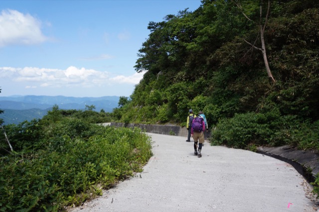 登山者の多くは急な登山道ではなく、登りも下りも林道を歩いてくるようでした。
