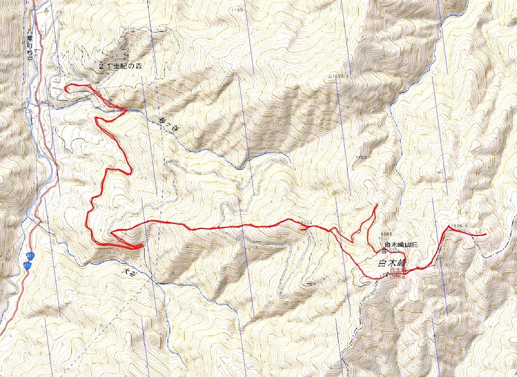 白木峰迂回ルートデータ歩行距離(往復):約14km