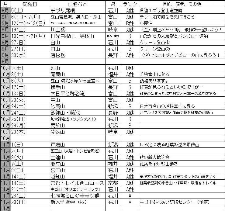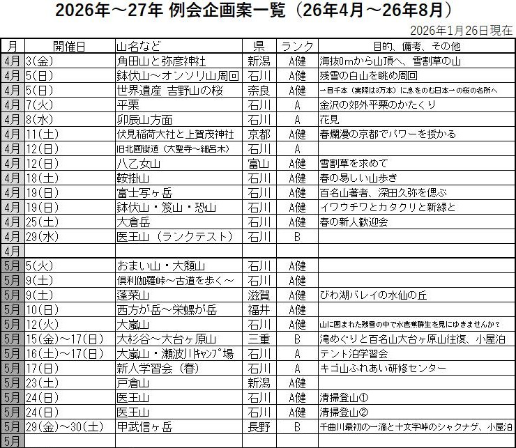 CL名・SL名の入った計画一覧表は