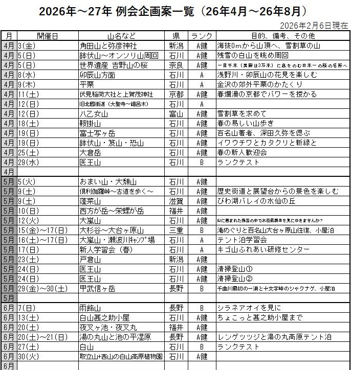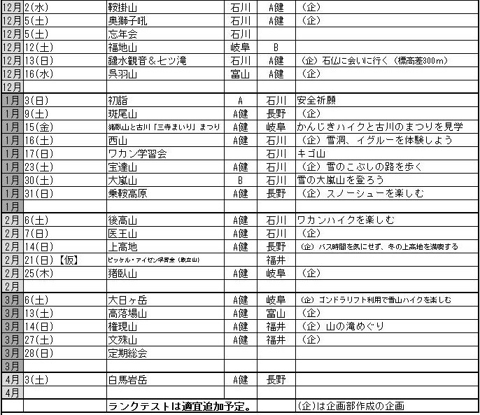 CL名・SL名の入った計画一覧表は
