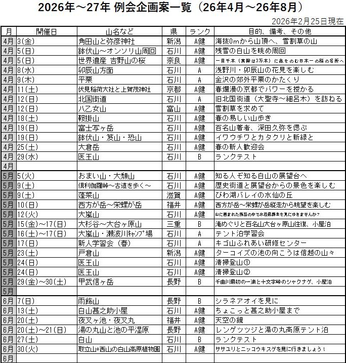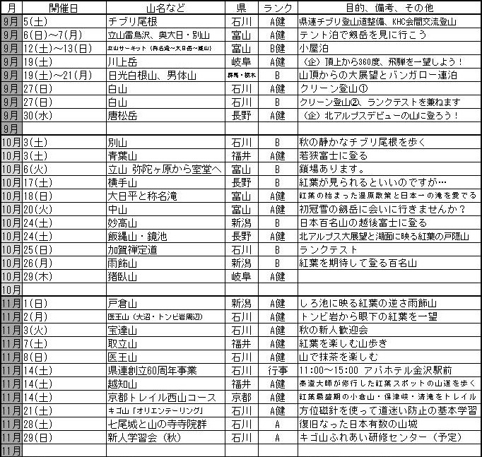 CL名・SL名の入った計画一覧表は
