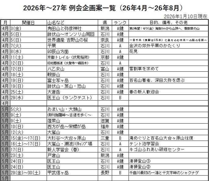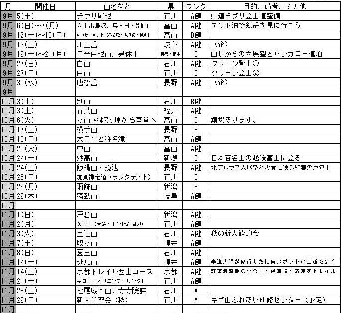 CL名・SL名の入った企画一覧表は