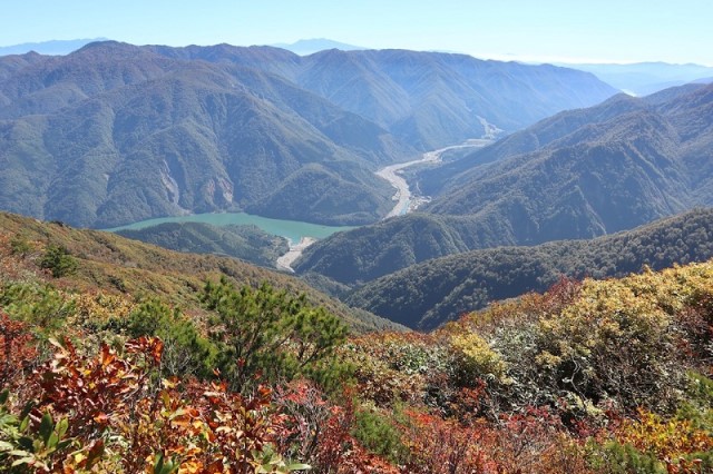 野谷荘司山頂より鳩谷ダムと乗鞍岳
