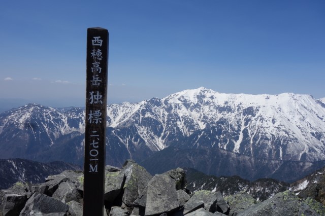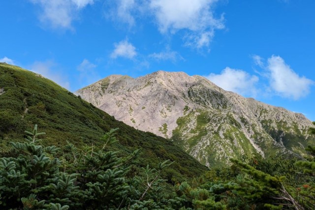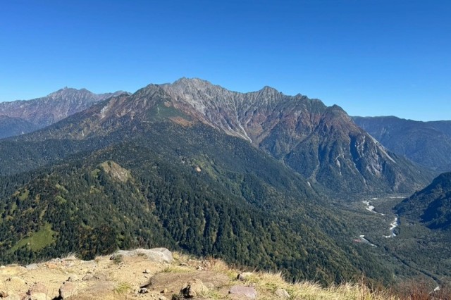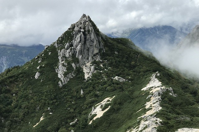霞沢岳登山中に見た前穂高岳
