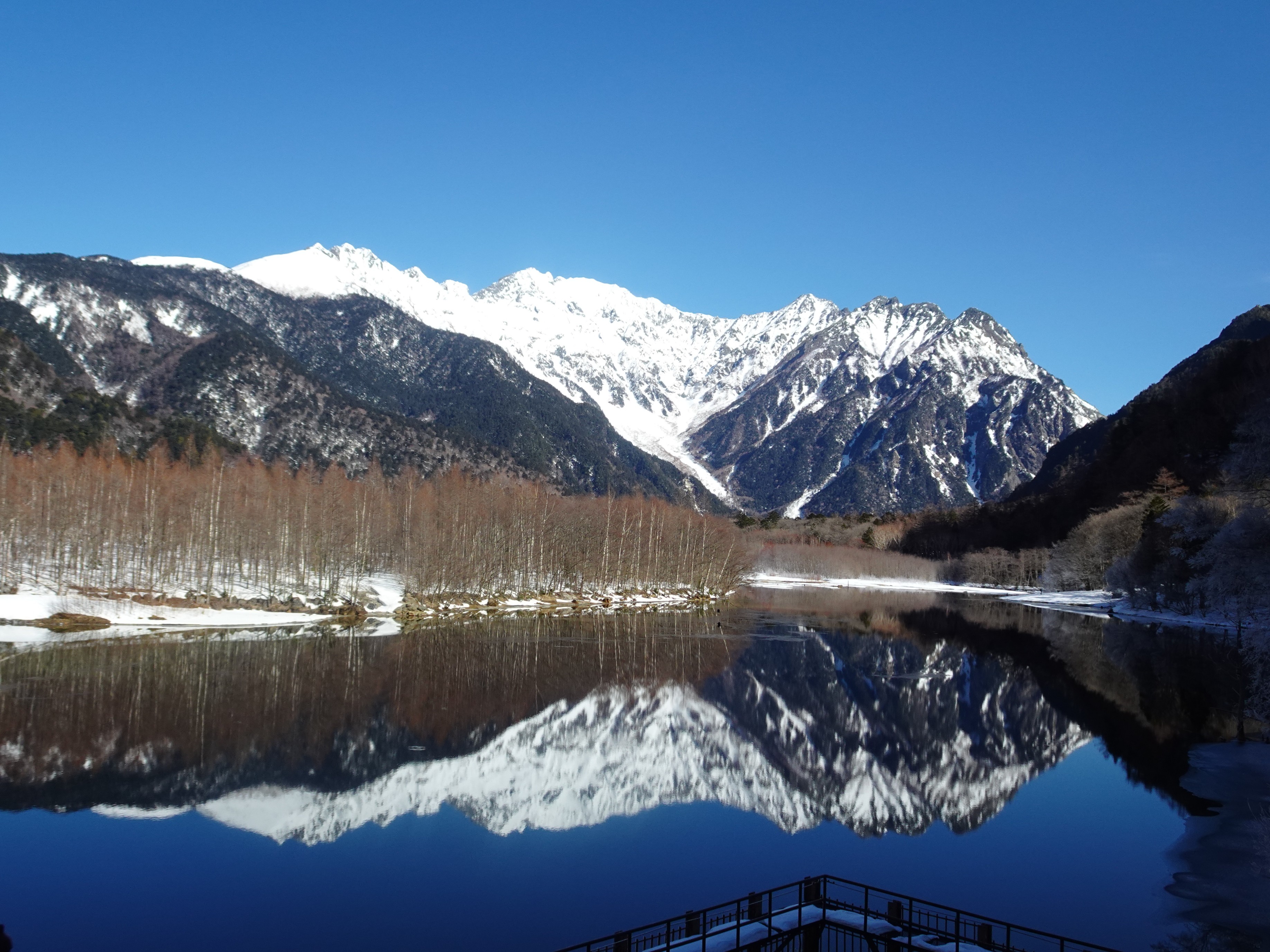 大正池の穂高連峰の素晴らしいリフレクションに感動