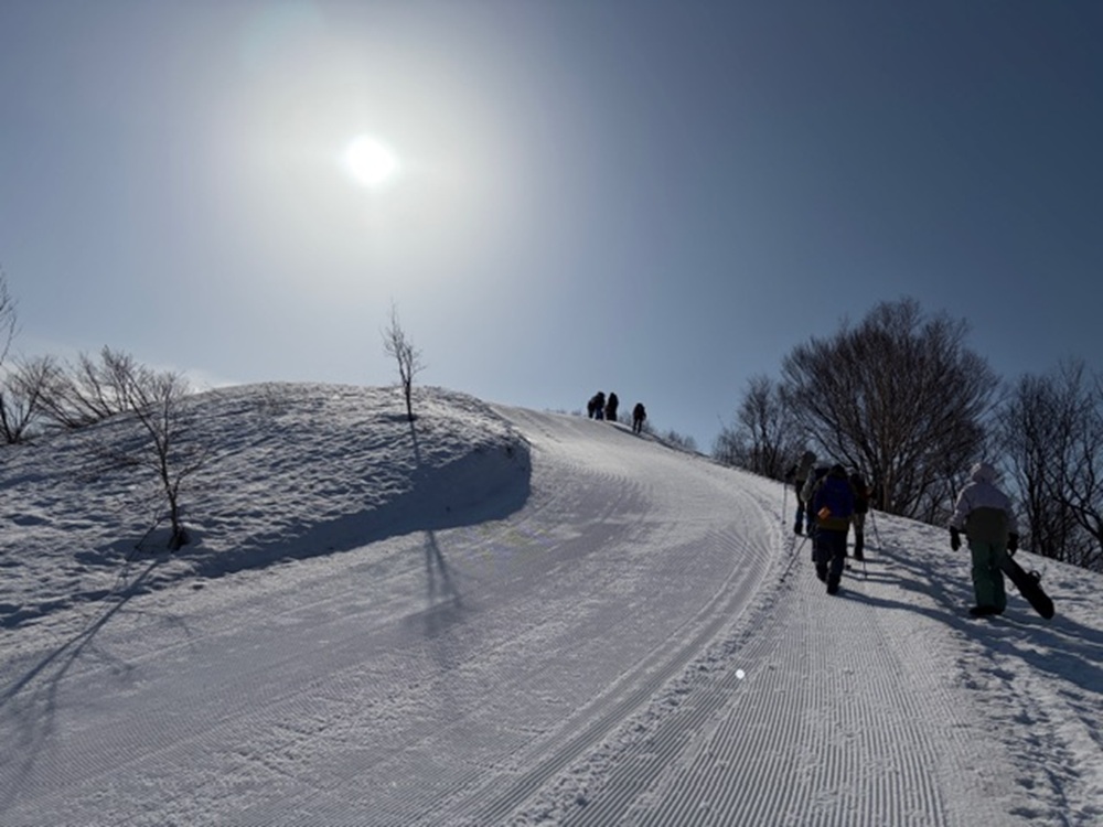 ボーダーやスキーヤーのスピードに驚きながら山頂を目指しました。