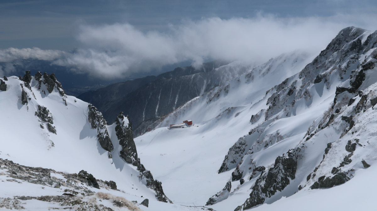 冬雲が晴れたタイミングで千畳敷カールから乗越浄土へ登る。